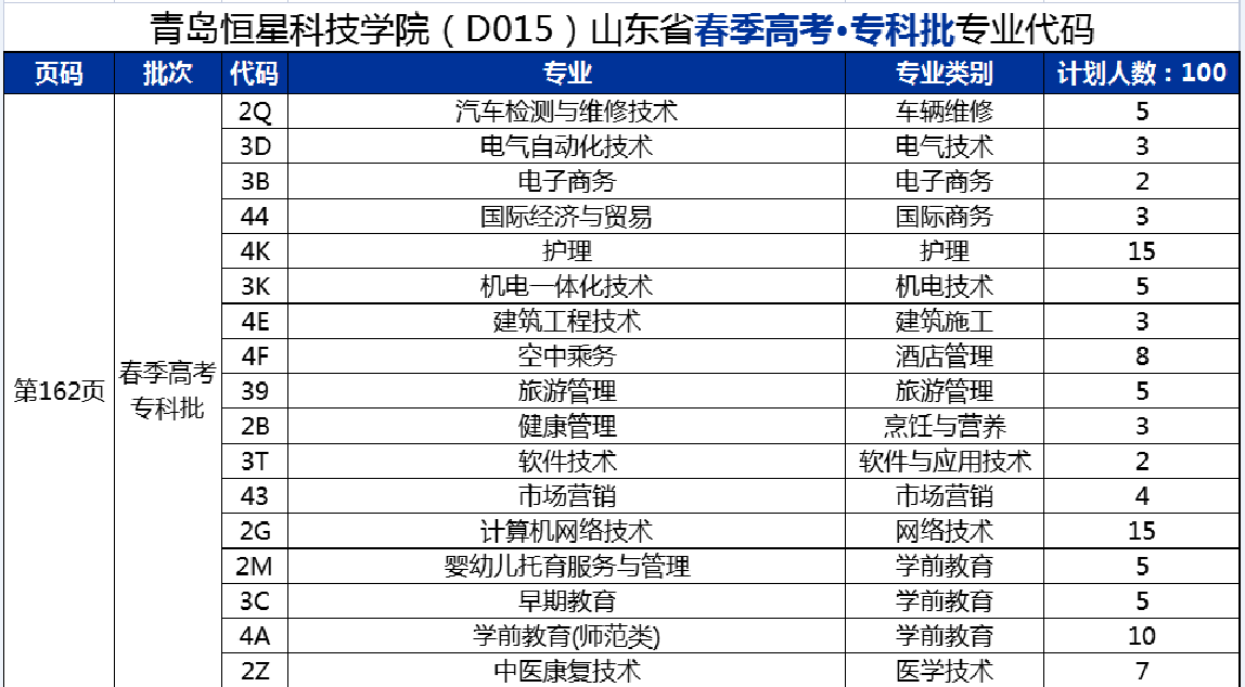 2022年春季高考招生计划(山东省专科)青岛恒星科技学院