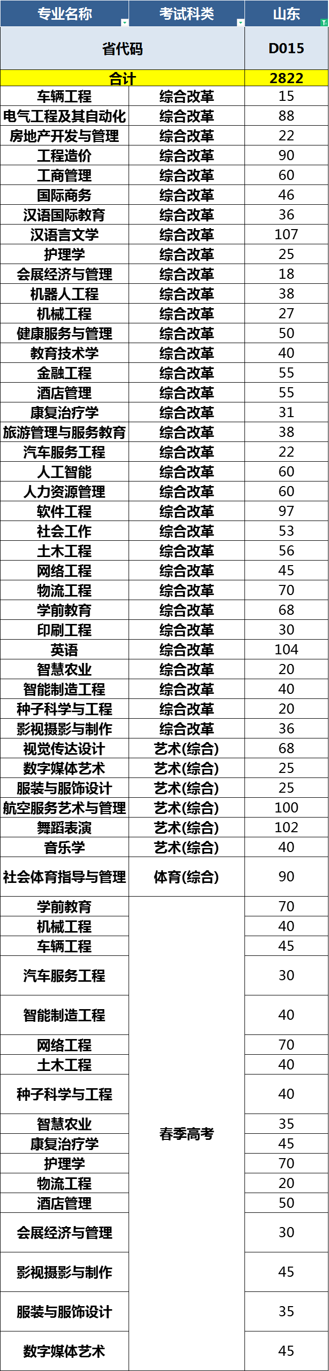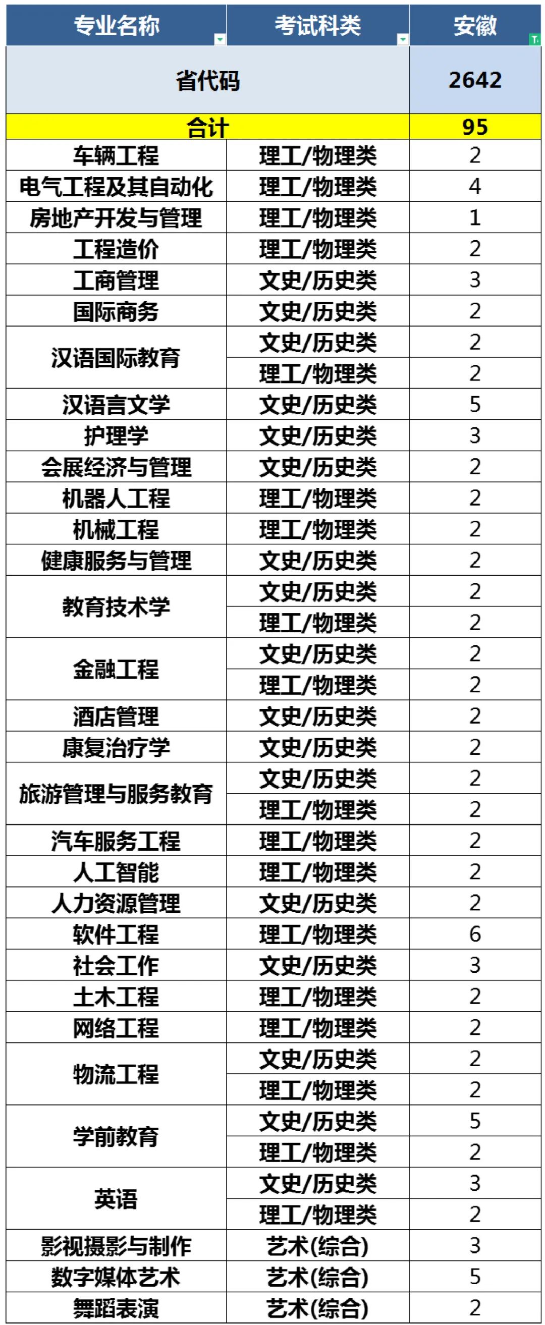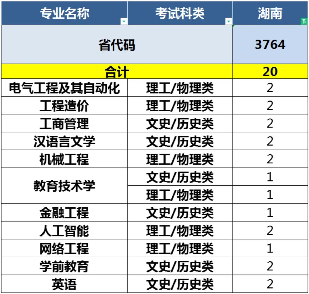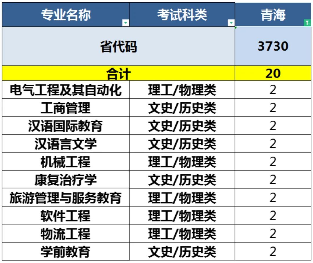 2022年青岛恒星科技学院面向全国24省(直辖市、自治区)招收本科生3640人、涵盖工学、管理学、艺术学等9个学科门类、40个本科招生专业。 24个招生省份(直辖市、自治区)及考试科类分布如下: 山东、安徽、江苏、辽宁、黑龙江、河北、河南、山西、吉林、甘肃、天津、浙江、四川、贵州、湖南、新疆、青海、福建、宁夏、内蒙古、上海、江西、陕西、重庆。 备注:考生填报志愿时应以所在省(自治区、直辖市)报考指南正式公布的计划为准。
