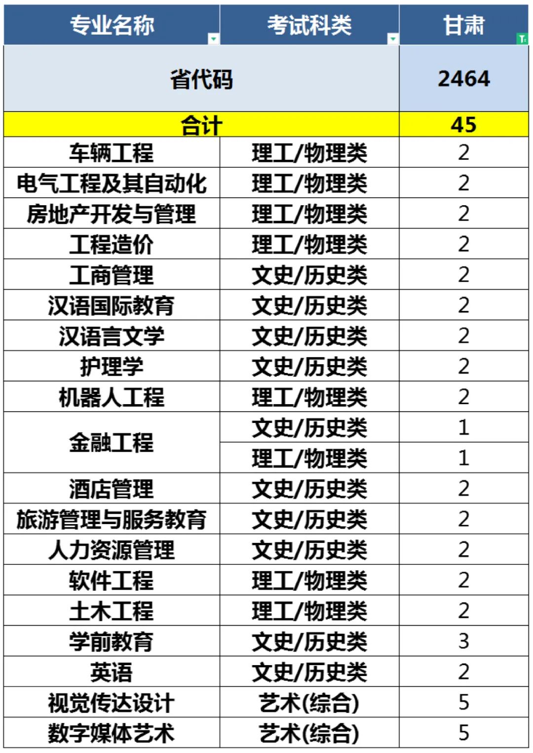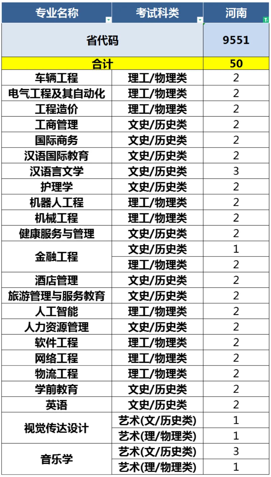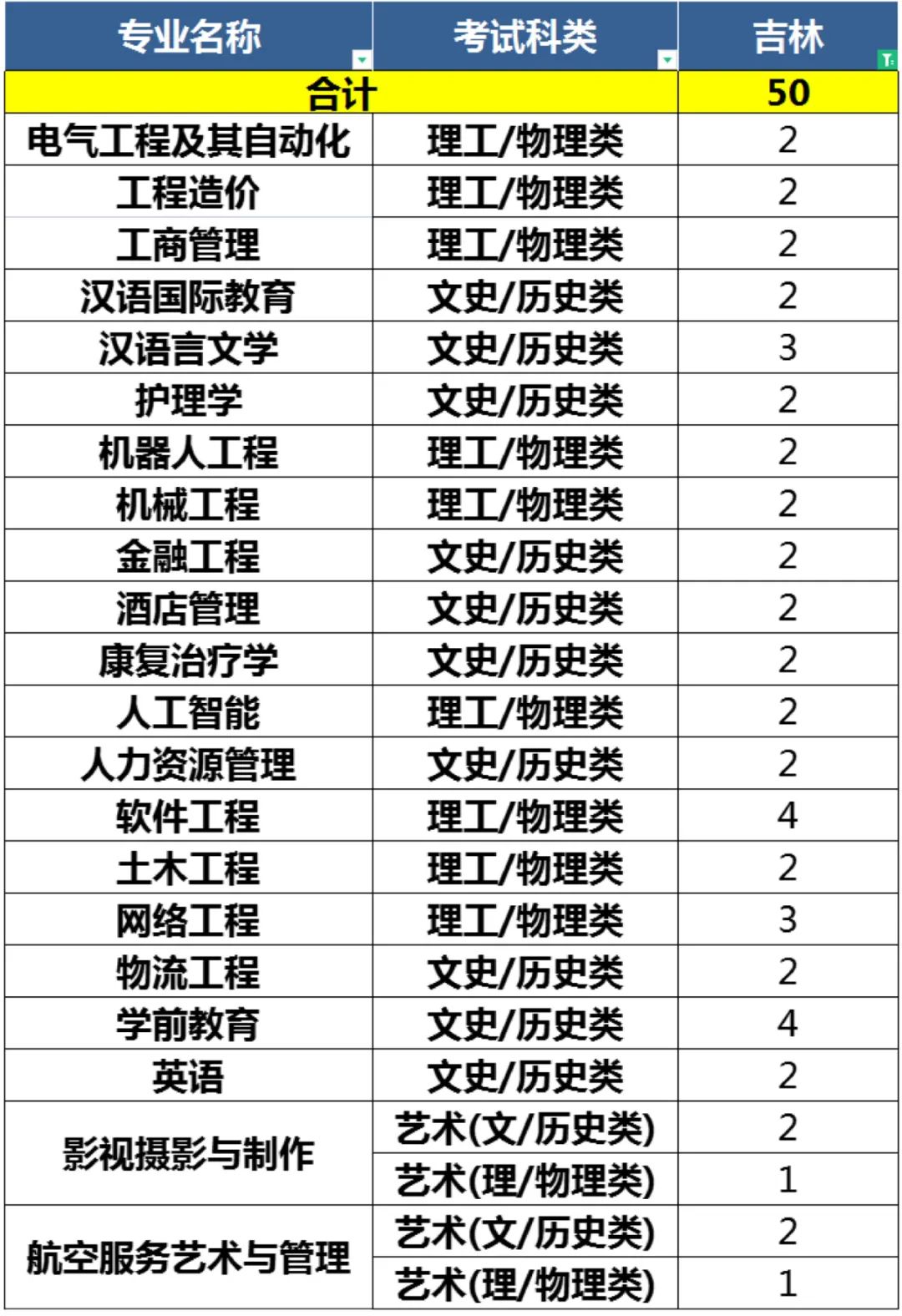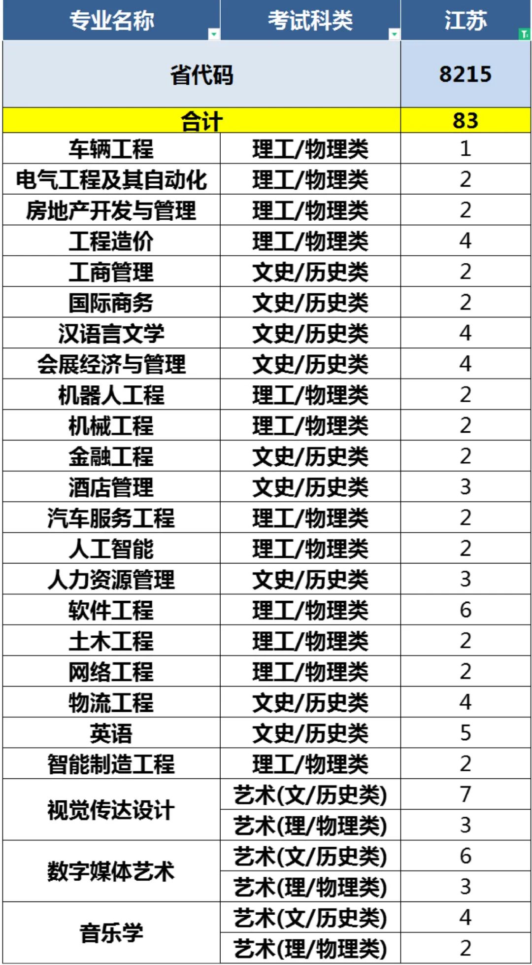 2022年青岛恒星科技学院面向全国24省(直辖市、自治区)招收本科生3640人、涵盖工学、管理学、艺术学等9个学科门类、40个本科招生专业。 24个招生省份(直辖市、自治区)及考试科类分布如下: 山东、安徽、江苏、辽宁、黑龙江、河北、河南、山西、吉林、甘肃、天津、浙江、四川、贵州、湖南、新疆、青海、福建、宁夏、内蒙古、上海、江西、陕西、重庆。 备注:考生填报志愿时应以所在省(自治区、直辖市)报考指南正式公布的计划为准。
